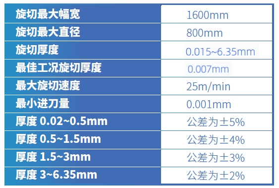 使用优质的坯料,同时也取决于旋切刀的质量、坯料的均匀性、坯料的温度,场地的稳定性等多种因素,可以车削出以下精度的薄膜/车削板: